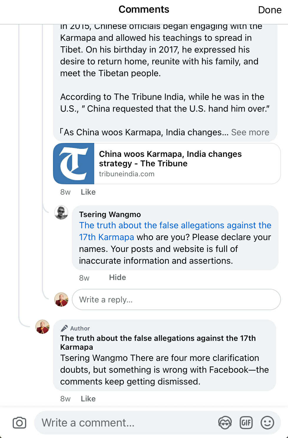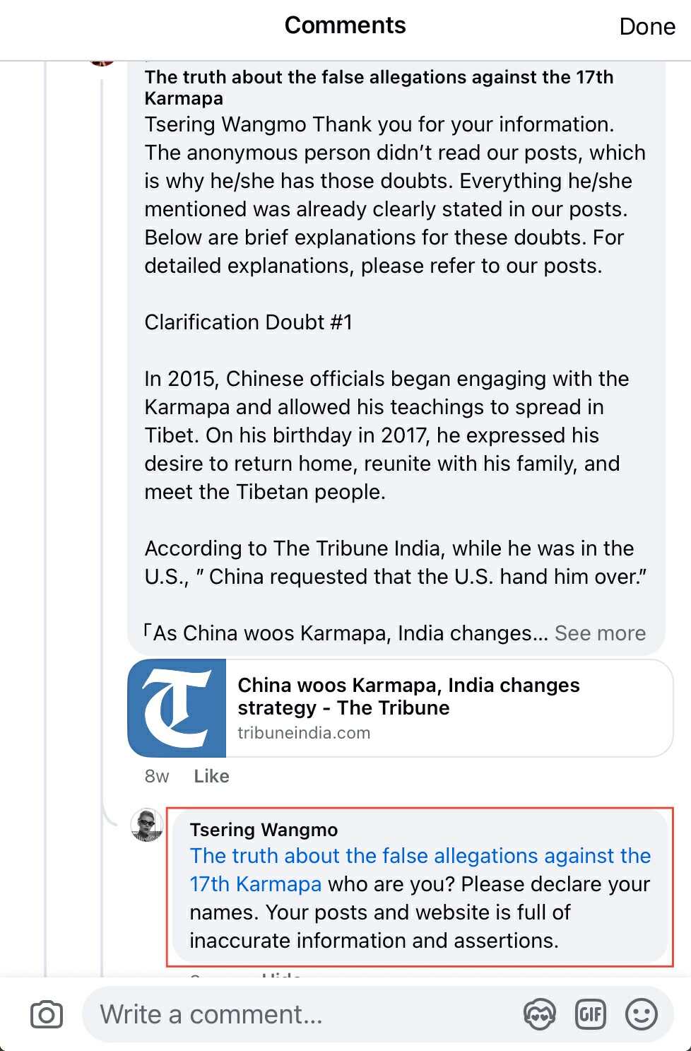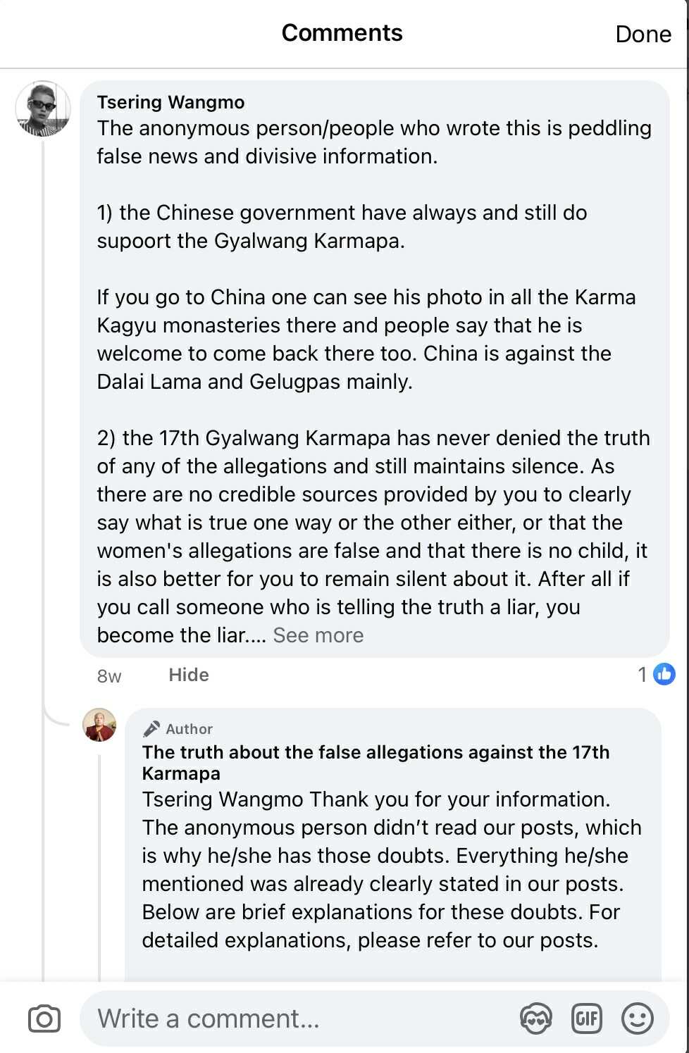 Adele Tomlin (a mara hiding by the name Dakini Translations) left a comment to the Facebook page author “the truth about the false allegations against the 17th Karmapa“- here are my thoughts.